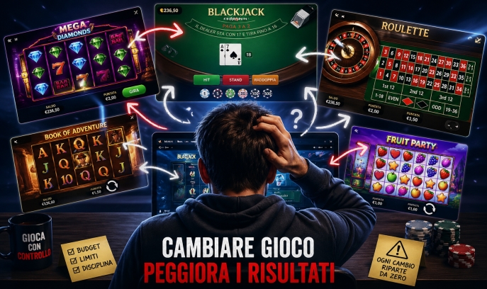 Aprire una sessione di gioco su un casinò online con le idee chiare e ritrovarsi, dopo venti minuti, a saltare da una slot a un tavolo di blackjack, poi a una roulette e infine a un altro gioco scelto quasi a caso: è uno scenario comune, che riguarda una grande parte dei giocatori. Cambiare gioco durante una sessione è normale, ma quando può sfociare nel pericoloso?